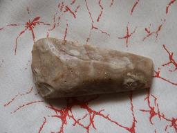 On peu voir sur la photo (en bas à gauche et celle de droite) ce que l'on appel 'le coup du tranchet' c'est à dire un biseau (bis -os) qui caractérise d'une manière assez net cet outil significatif du néolithique ( de la culture SOM entre autre).