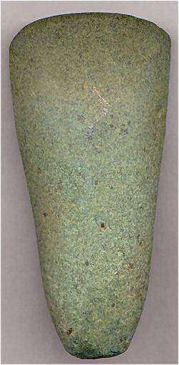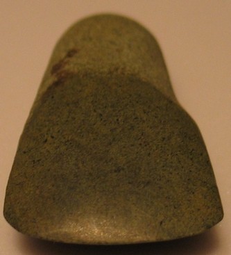 Sur chaque face, du côté gauche en regardant la hache avec le tranchant en haut, on voit très nettement un amincissement latéral et un creux.
