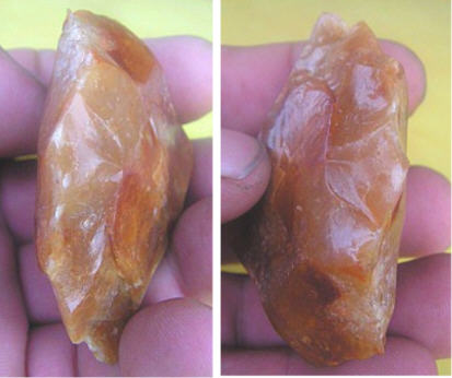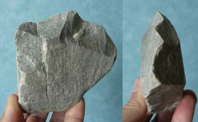 mais ... ce qui fait que cela n'en est pas un : un chopping tool est taillé à partir d'un galet: aïe ! donc ce n'est pas un chopping tool