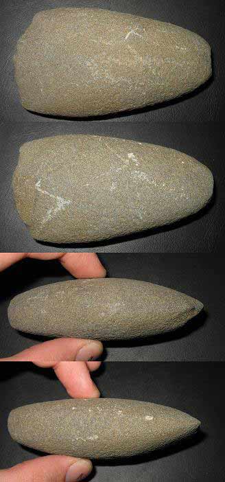 Hache en pierre mais quelle pierre ? Avez-vous s' ils vous plait une idée sur la matière de cette pierre. Habituellement celles que je rencontre dans les musées du coin ou expos sont en grés de la région, un grés au grain fin. Celle-ci est différente, le grain et plus gros et la couleur plus sombre.