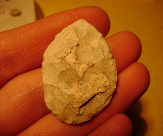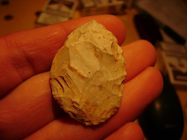 Il existe de tout petits bifaces moustériens, le plus mini que j'ai tenu dans les mains ne faisait pas 4cm !!!, qu'un ami à découvert, l'outil ayant été clairement identifié, ils ne se trouvent pas seulement en Normandie mais bien bans notre chère dordogne. Effectivement on est pas dans le soud profond, et je n'ai absolument aucune connaissance du coin, par contre j'ai un exemplaire qui fait à peine 5 cm. Par contre on ne peut bien évidement pas être afirmatif sur l'identification, mais bon je vois mal ce truc ailleurs, enfin ton caillou Juju mérite d'être montré à qq1 qui pourrait trancher, affaire à suivre.