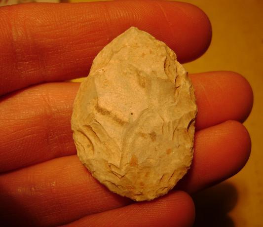 Quand on voit la course à l'échalotte qu'il y a eu il y a quelques semaines pour la plus grande hache, on peut comprendre que des bifaces de 4 cm n'aient pas attiré l'attention et aient été tout simplement mis dans la bam comme disent les métallos. Pour l'efficacité, si vous épluchez les patates avec un couteau de boucher, pas moi. Il faut admettre que Neander a fait du travail plus minutieux que celui pour lequel on l'imagine dans les images classiques. Je suis dans une région sans silex et avec chaille jurassique et les dernières armatures que j'ai vues dans cette matière sont mésolithiques et encore plus souvent ancien que récent. Du côté armatures néo que ce soient ovales ou autres rien en chaille
