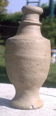 pouvez-vous s'il vous plait m'identifier cette petite poterie en terre cuite de 13.5cm de haut et 6 cm de diametrre ? je l'ai trouvé dans la terre sous un vieux mur en pierre. je vous remercie d'avance pour vos idées