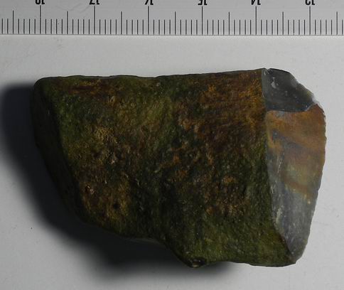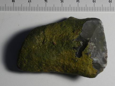 Presque entièrement corticale, juste deux 'coups du burin' pour créer un angle tranchant. Seul un coin a été abimé par l'agriculture.
