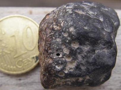 3 : - La croûte présente des cupules correspondant à de la matière en fusion arrachée lors de la traversée dans l'atmosphère, on appelle cela sur une météorites des regmaglyptes. Cela est déjà plus intéressant.