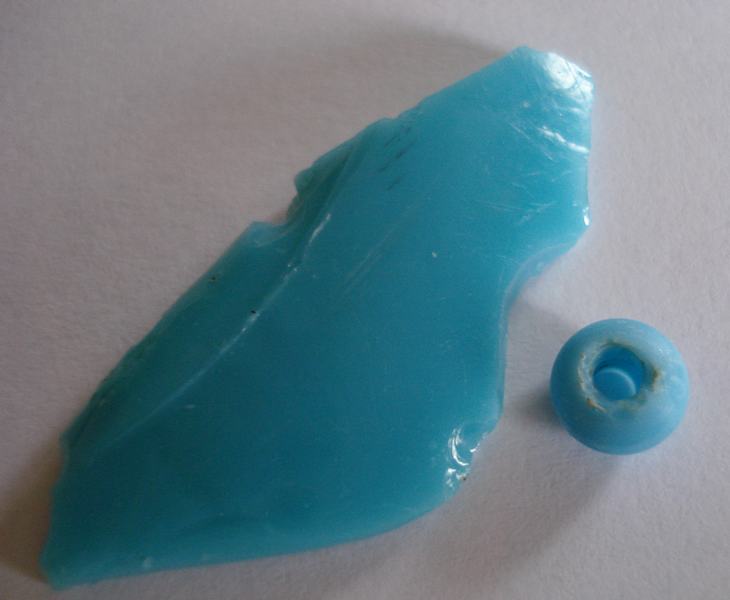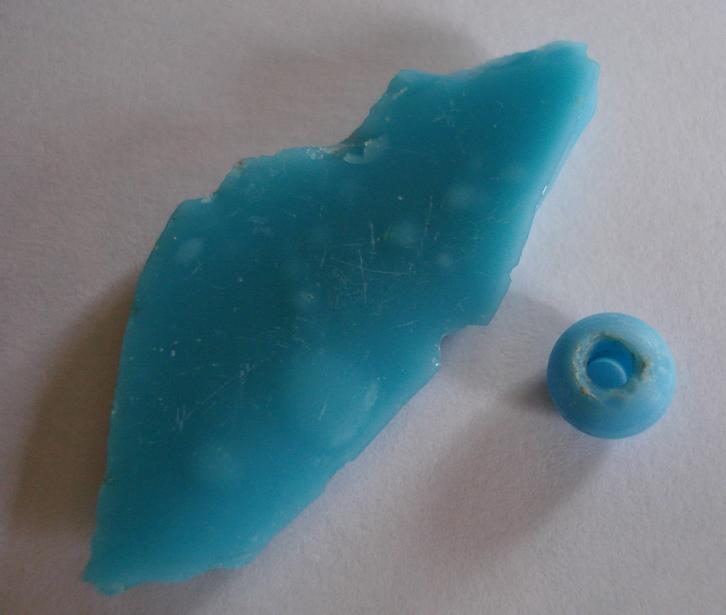 Je suis retourné dans le champ ou j'ai trouvé la perle turquoise et dans le même périmètre j'y ai trouvé ce morceau de même couleur !!