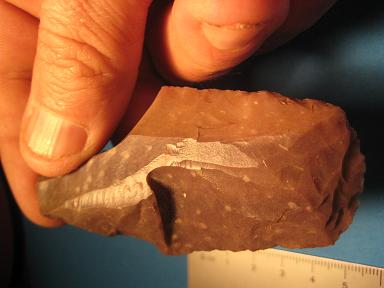 Salut Ovny, ce qu'a voulu dire Géo (que je salue au passage) c'est qu'il est impossible d'identifier un objet acheté, d'ailleurs ce forum n'est pas fait pour ça mais bien pour partager des découvertes fortuites entre passionnés. Pour ce qui est d'achat de caillou, bien malin est celui qui ne se fera pas prendre, je sais de source sûre (d' un tailleur du forum notament que je salue également) mais aussi de qqs zamis qui pratiquent la taille depuis X années, qu'un silex qui a séjourné 2 - 3 années dans un sol bien calcaire acide etc... va présenter une trés jolie patine, qui peut en dérouter plus d'un. J'ai habité à Périgueux qqs années à côté d'une boutique d'un cordonier tailleur de silex et vendant sa production, à l'aide d'un procédé chimique il arrivait à 'patiner' ses feuilles de laurier...donc comme y disent méfio té et abstiens toi. Sinon pour moi c'est un grattoir sur lame pété un peu comme celui ci, découvert en contexte paléo sup, mais impossible d'être certain car trop fréquent, même au moustérien ils en taillaient des comme ça.