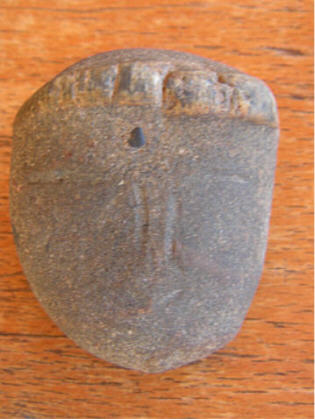 Surprenant comme trouvaille, en plus des yeux, nez, bouche, on pourrait voir au dessus de la tĂŞte, une tonssure.