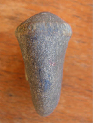 Je pense néanmoins que c'est un galet naturel qui a été utilisé pour sa forme initial. La tonsure étant une veine de quartz ou calcite, difficile a déterminé vu d'un écran, qui traverse la roche mère. Mais cela n'enlève rien au côté surprenant de cette gravure d'un nez et d'yeux pour compléter ce visage.