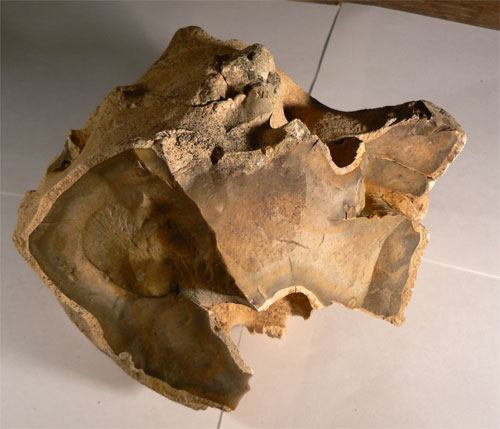 [1291] J'ai trouvé aussi un autre silex d'environ 15 cms à coté du précédent, peut-etre un autre nucléus ?