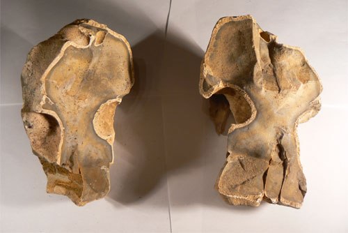 Trouvé ce morceau de silex d'environ 20 cms, la 1er photo représente un des cotés du rognon, mais le plus étonnant c'est qu'il se sépare en deux morceaux s'emboitant parfaitement, on voit très nettement sur la 2em photo le point d'impact, je l'ai trouvé en forêt et non en labour. Merci d'avance pour vos conclusions.