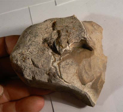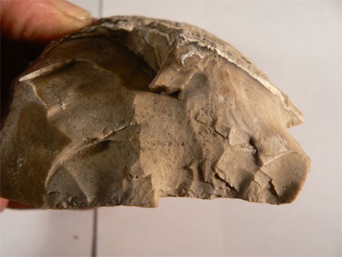 Trouvé cet objet en compagnie du nucléus ( si c'est un nucléus bien sur ) je pense à un grattoir aménagé sur un éclat d'environ 9 cms de long par 8cms de large.Merci pour vos avis.