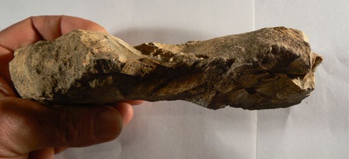 Trouvé ce silex de forme bizare, on dirait que l'enlèvement en R0 a été fait pour lui donné une meilleur ergonomie comme le montre la photo R3 et il y a cette pointe, caisse donc un outil ou un vulgaire silex ? Merci d'avance pour vos avis éclairés.