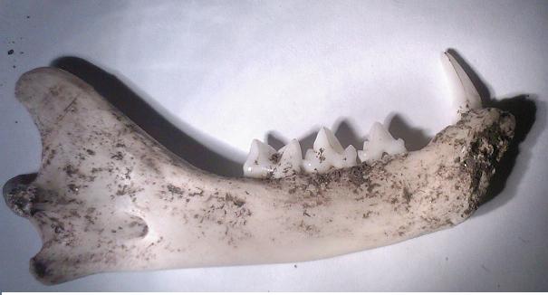 [1400] Correus, la blancheur de l'os montre que l'animal est mort récemment.De plus la machoire est petite meme pour un chat.(5cm).Les dents n'ont aucunes usures .Je suis désolé car l'idée que ce soit un lynx est alléchante,mais je suis sur que c'est un jeune chat.