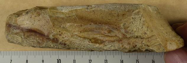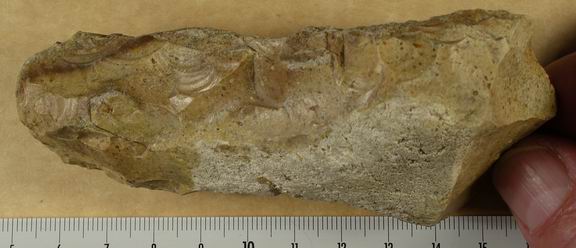 Je pense aussi à un usage important. Sur les côtés on voit une usure qui ressemble un peu, en plus fin, à ce que l'on voit sur les percuteurs (en bas sur R1). cela me fait penser à une usure due à un enmanchement.