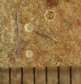 Le cliché n'est pas assez grand pour se rendre compte. Quelle taille pour les cercles? Ca a l'air très petit. A vue de nez, il se peut qu'il s'agisse bien de fossile. Si tu as d'autres macro à nous montrer (et pas de clichés de maquereau les gars... :o))