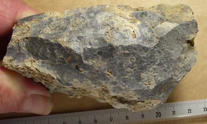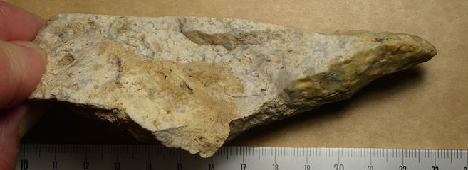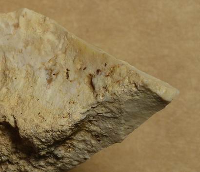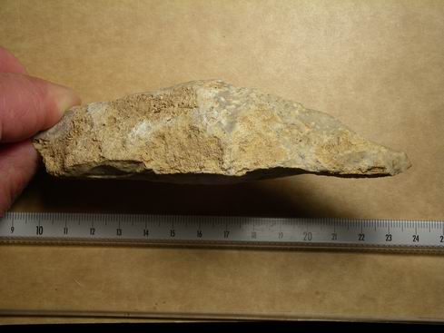 En ce qui concerne le R7 , il semble bien que cela soit un éclat de taille en grès mais cela ne confirme pas l'hypothèse d'outil en silex à meulière.