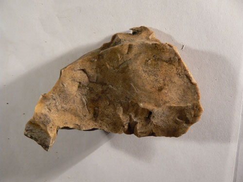 Je n'ai, hélas, pas pris en photo le très beau spécimen de cailloux éclaté de très nombreuses sphères sur les deux faces qui ressemble à s'y méprendre à un biface, qui est montré à l'entrée du musée des Eyzies (Geo24 ... à l'occase, tu nous ferais pas un petit cliché ?) Ce n'est qu'en y regardant de près que l'on voit qu'il n'y pas de logique de taille.