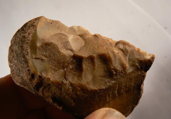 Merci pour ta patience et ton sens pédagogique, j'ai bien compris ton histoire de logique de taille, j'ai posté ces deux silex car je les ai trouvé en compagnie de ce que je pense être un gros nucléus ainsi que trois autres silex que j'ai trouvé un peu travaillé et que je poste ensuite.