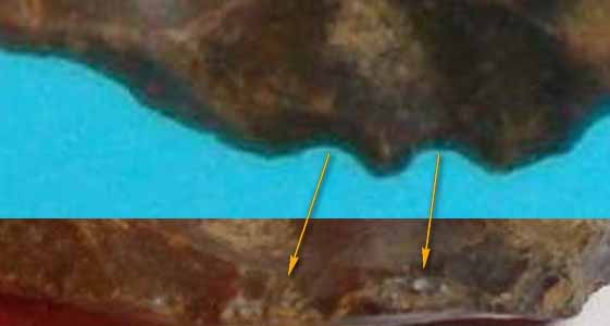 Je pense qu'il s'agit vraiment de coches, sinon retouchées, au moins fortement esquillées, et là , ce n'est pas par le piétinepent mais par l'usage, je présume.