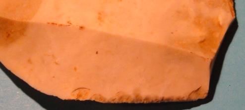 Voici un éclat avec un beau bulbe de percussion.on distigue sur la partie droite de la première photo des retouches ? Peut etre plus liées à l'utilisation....