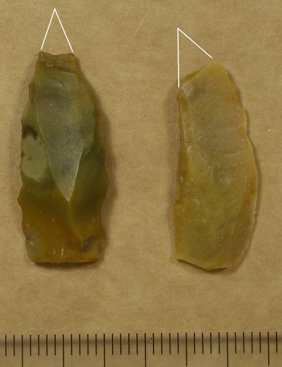 L'une à retouches d'un seul côté, l'autre à retouches bilatérales.