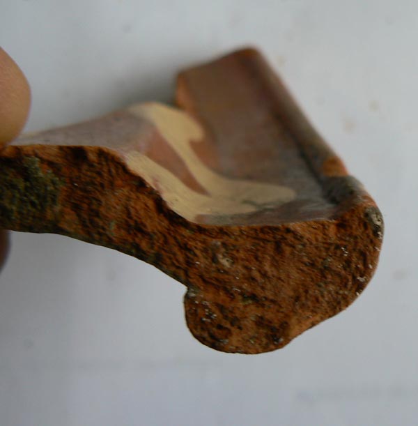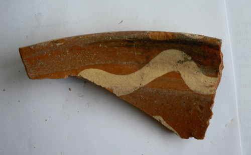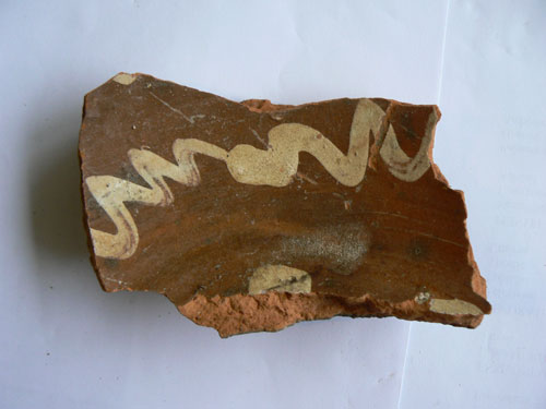 Trouvé ces deux tessons de poterie qui ne me semblent pas vraiment récent, la forme du motif ainsi que les couleurs m'ont paru sympa si quelqu'un peut me l'identifier, merci d'avance.
