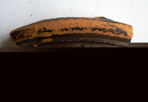 J'ai trouvé ce tesson récemment, mais j'en avais trouvé un autre vers le mois de Mai l'année dernière que j'avais posté (n° 66302 ) licaunais y disait avoir trouvé de la sigillée tardive décoré à la mollette dont l'engobe ressemblait à celui-ci et Thierry31 pensait que cela pouvait être de la campanienne . Le débat en était resté là donc je le relance avec ce nouveau tesson. Merci pour vos avis.