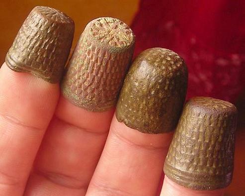 Voici ma contribution, j'ai seulement mis ceux qui étaient entiers.... Bague et dés à coudre.... Si quelqu'un avait une info sur le poinçon de celui en argent, je suis preneur....