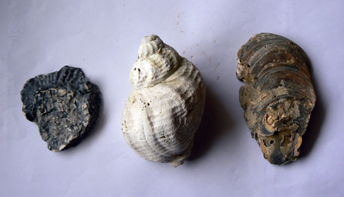 Trouvé ces coquillages, un bulot comme jamais j'en ai manger ( 9 cms )une huitre structurée comme une belon mais qui ressemble à une plate et surtout cette petite huitre noire dont les striures sont verticales à la façon d'un moule à tarte. Sa forme m'a interpellé, c'est pour cela que je me permets de la mettre sur le forum. merci pour vos avis.