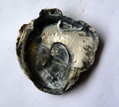 Ce que je peux dire c'est, qu'à gauche il y a une valve supérieure d'huître sur laquelle était fixée probablement une autre huître.