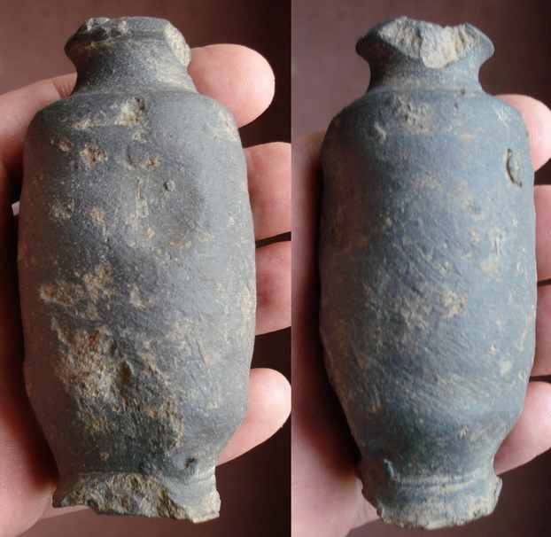 Ici, avec ce petit flacon, on est clairement dans une production en grès classique, en tout cas pour l'Ouest de la France. La lèvre est même très caractéristique.