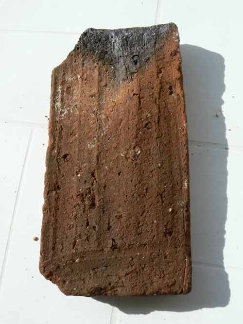Elle ressemble par sa couleur et son grain à une tuile de couverture d'époque romaine, c'est un peu le même aspect en photo,