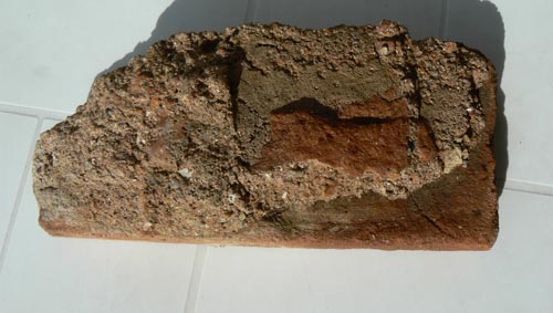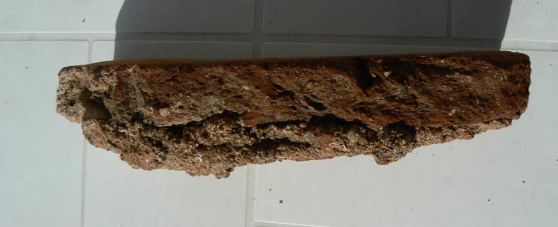 Merci de t'intérresser à cette brique, effectivement elle est entière à part les deux angles, quand tu parles de tuile de couverture romaine, je suppose que c'est les tuiles à rebord ou 'tegulea' suis pas sur pour l'orthographe latin ! ? C'est une brique, on ne voit ni cassures ou reste de ce fameux rebord qui part à la vertical. Figure-toi que j'ai un reste de mortier, quand je l'ai trouvé elle avait une copine que je n'ai pas osé poster pour ne pas encombrer le post de photos. Le mortier est composé de gravier petit et moyen et de briques pilées !!