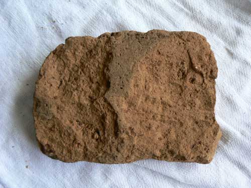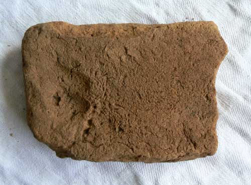 Je pense que cette brique est bien passée au four, même si la cuisson n'est pas extraordinaire. Tout comme pour l'autre brique, la datation n'est pas très précise pour ce genre de production; peut-être époque médiévale ou moderne voire même contemporaine ?
