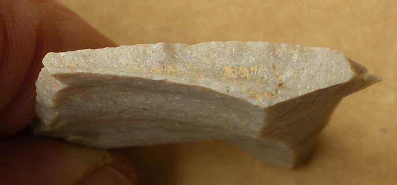 Quelques photos d'un éclat de grès taillé laminaire. Je pense à un couteau à dos.