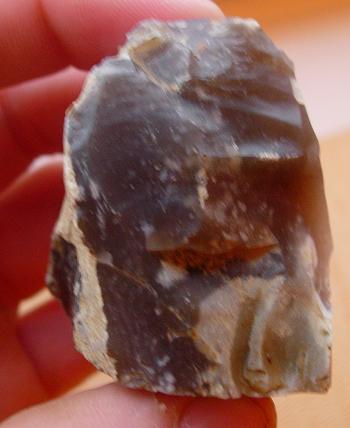 Heuuu ... Olivier ... faudrait y aller avec un peu de nuances dans les compliments ! Je me mouille de beaucoup d'identifications : des faciles, pour faire mon interessant (!) et des plus difficiles pour le plaisir d'apprendre en confrontant nos opinions. J'ai beaucoup appris sur ce forum soit dit en passant : photos, commentaires. Aussi sur les blogs que beaucoup d'entre vous ont fait. Aussi auprès de collectionneurs (Roger et tous les autres ...). Aussi sur le terrain où depuis des lustres je trouve en surabondance des outils (?) mal foutus (est-ce un éclat, un outil ou de l'épanelage ?) de la retouche improbable (sont ce des esquilles de piétinement ou des retouches d'apprenti tailleur ?) du machin creux (est ce une cupule de gel ou un bulbe ?). Oui, je suis un grand perplexien du banal (j'en entend qui disent de la merdouille dans le fond de la classe !), non non, je persiste, j'aime beaucoup l'outillage humble... il vaut mieux vu ce que je trouve depuis bientôt trente ans. ! Ceux qui me connaissent, connaissent aussi mon tableau de chasse : zero haches polie, zero bifaces, quelques outils significatifs, quand même, des tas de nucleus (oui, vraiment des tas, laissés sur place pour la plupart), des grattoirs et racloirs de deuxième catégorie (et de troisième catégorie ... vous me suivez) et des tas de lames/lamelles de deuxième catégorie aussi pour la plupart.
