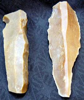 On a là sans aucun doute possible deux magnifiques lames qui presentent manifestement des aménagements: un perçoir pour la lame de droite un couteau a dos abattu pour celle de gauche,avec un amenagement en burin sur l'une des extrémité,y aurait il un site archéologique dans le potager?