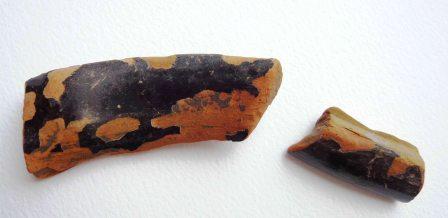 D'après les clichés et la localisation, je reste sur ma première idée : terre vernissée marron (manganèse ?).