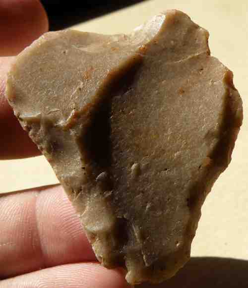 Voici un bel outil trouvé en labours dans le 24 ,ses dimensions sont de 5cm / 3,5cm il porte de belles retouches sur ses deux arrêtes jusqu'à la pointe et le bulbe de percussion à été retiré par un coup porté sur le coté gauche du talon... Son epaisseur moyenne est de 0,6cm . Fortuité par une de ces merveilleuses aprés midi ensoleillée que nous avons eu récemment ,pourriez vous me donner vos avis concernant sa typologie ainsi que son AGE , c'est un secteur entouré plutôt acheuléen ,mousterien et aurignacien