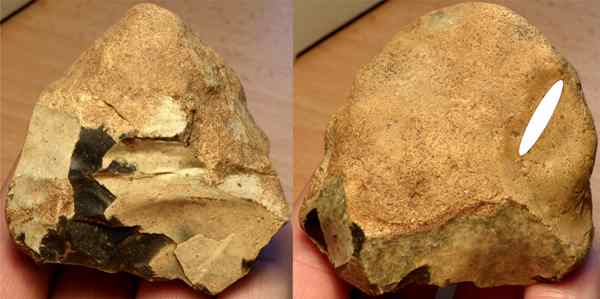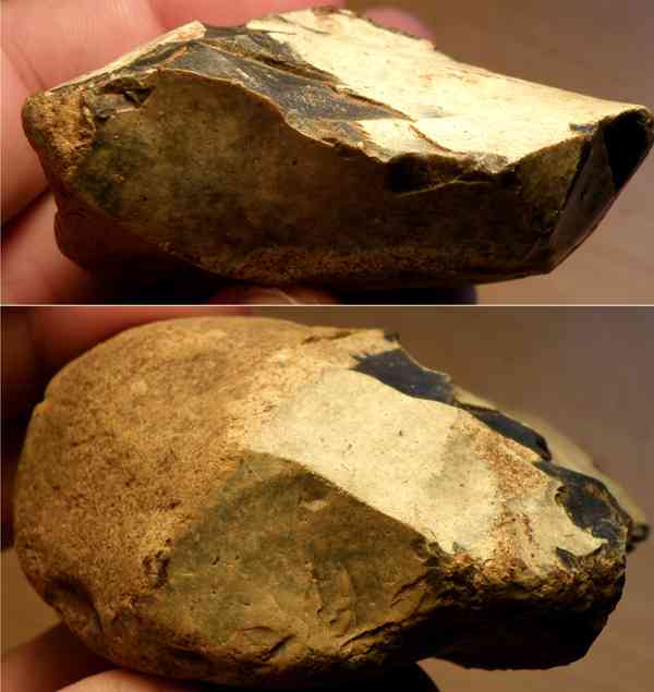 Salut heidelbergensis, ça ressemble à ce que les anciens de Dordogne appelaient coup de poing, moi aussi j'y verrai bien un chopping tool, pas courant chez les gouyats, encore un bien bel outil sauvé, bravo ! au fait de quel coin est tu ?