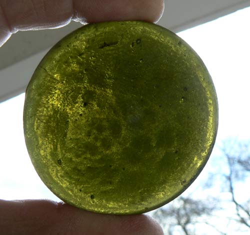 Voici la photo Luz, merci de te pencher sur ce morceau de verre. Peut-être un peu fragile pour un jeu de palet traditionnel avec lançé à trois mètres JC13, mais peut-être un pion pour un grand jeu de dame?