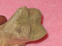 [1410] ce qui m avait attirer c etait la forme du bout taillé en pointe et en 4 morceaux comme si il avait été travaillé ..... je ne comprenais pas le rapport de la taille de l os avec cet terminaison mais je m étais dit que cela pouvait etre un doigt de chevreuil ........et ca repart