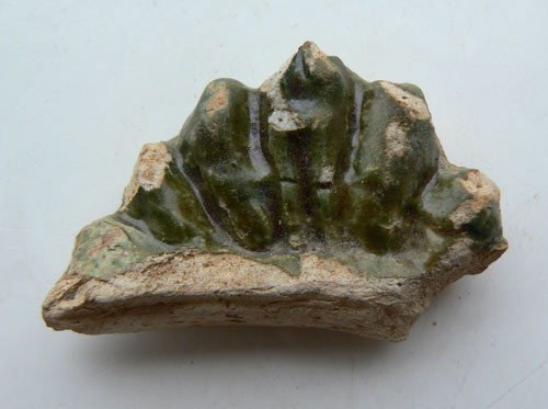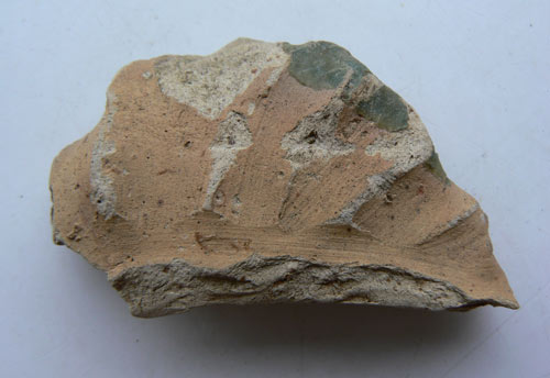 Trouvé ce petit tesson en labour, il me fait penser à ces grosses 'languettes' ( je ne connais pas le terme excat ) qui sont situées sur les bords des soupières ou des gros bols. Je serais intérrèssé de savoir son époque même approximativement. Si son décor inspire l'un d'entre vous merci d'avance.
