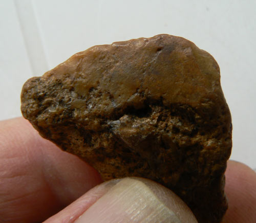 Trouvé ce silex qui lui aussi a été 'roulé-boulé', je pense à un racloir sur éclat ( ça fait un peu jeu télévisé ce genre de phrase ) Merci pour vos avis.