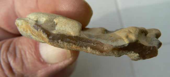 Comme je vous le disais dans l'autre post, voici le silex qui gondole, il a des concrétions très dure, à peine grattable avec un canif, je pense qu'il a été retouché, mais bon, merci pour vos avis.