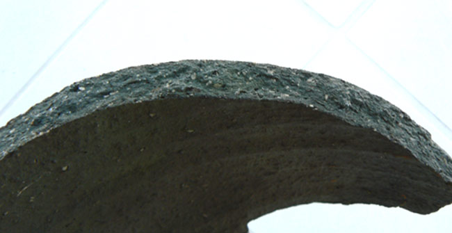 On est apparemment en présence d'une production locale. Le tesson parait très bien cuit et doit être assez sonore.