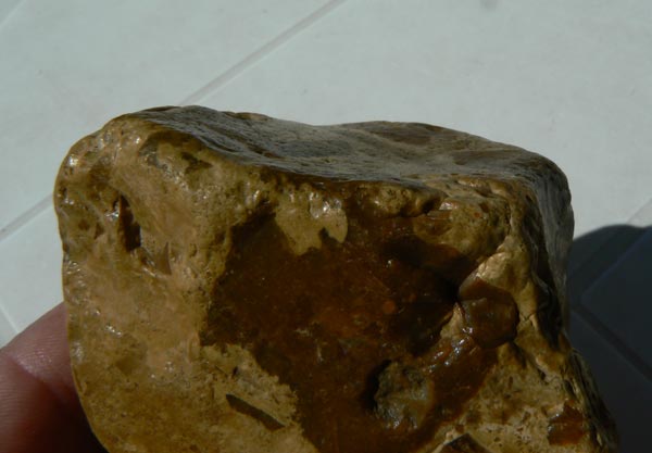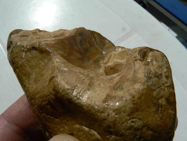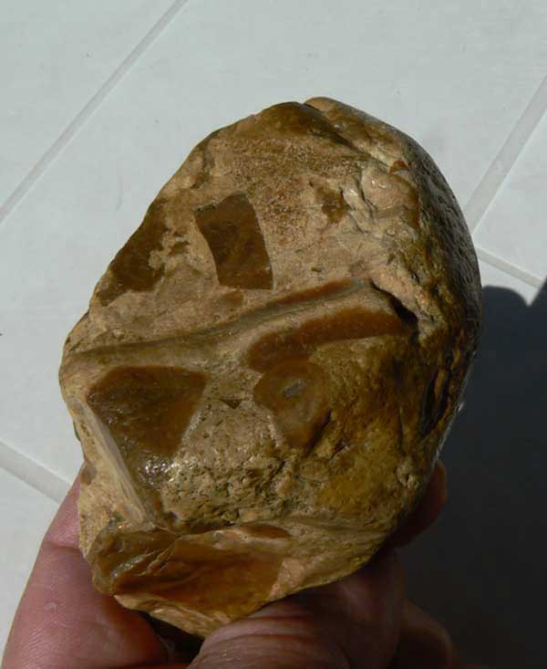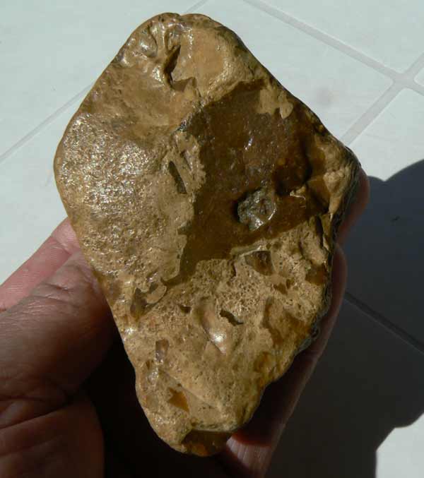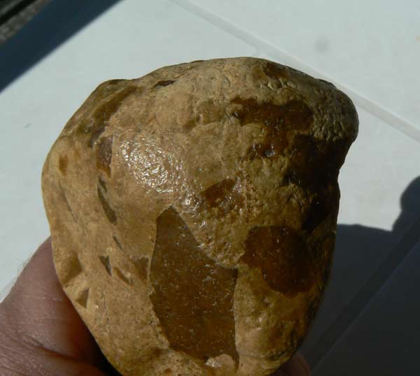 Merci pagus vexinus pour ton avis. Je joins des photos des deux principaux enlèvements ( naturels ou pas ) qui ont certainement été fait après sa forme initiale, ils ont un aspect beaucoup plus lisse à la vue et au touché. Sans parler de savoir si c'est un outil ou pas j'aurais bien aimé savoir quel est cette sorte d'amalgame aussi dur que le silex lui-même, ce qui est sur, ce n'est pas un rognon et si jamais il a été travaillé, ce n'est pas pour trancher. Si quelqu'un peut m'en dire plus sur l'origine de cette pierre , merci