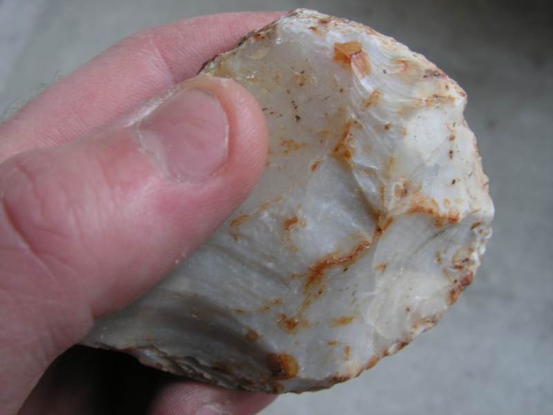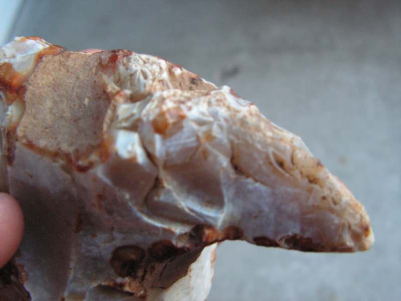 Serait il plausible que cet outil ai été fixé à un manche du coté opposé de la pointe ? photo R9; car sinon je ne vois pas comment son utilisateur pouvait obtenir une certaine force de percution. On trouve surtout dans la région des pierres en calcaire penses tu que cela servait à tailler ce genre de pierres ou bien cela pouvait il permettre de tailler des pierres plus dures ?