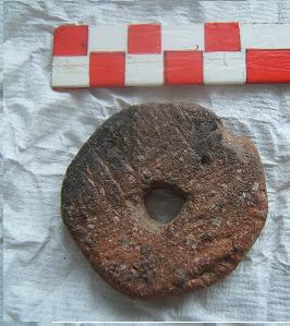 je reviens sur ce post, car j'ai quelques petits soucis d'identification avec cet objet qui pour une majoritée de personnes serait une fusaiole, pour d'autres un perle de parrure de la protohistoire ou néolithique, et pour certains un peson ou un lest qui était accroché à une cordelette ou un morceau de tissu etc...